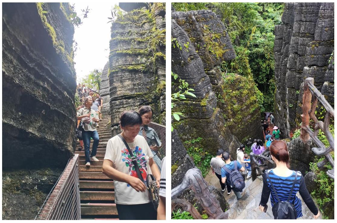 第三天,我們來到被稱為“世界第一奧陶紀石林”的梭布埡石林。走進梭布埡石林,猶如走進一座海底迷宮,穿行于此,仿佛神游時光隧道,有一種神秘的穿越感。有趣的人生,一半是人間煙火,一半是山川湖海,大家沉浸在綠樹奇石環(huán)繞的環(huán)境里,盡情享受眼前的美景,心也跟著飛揚。